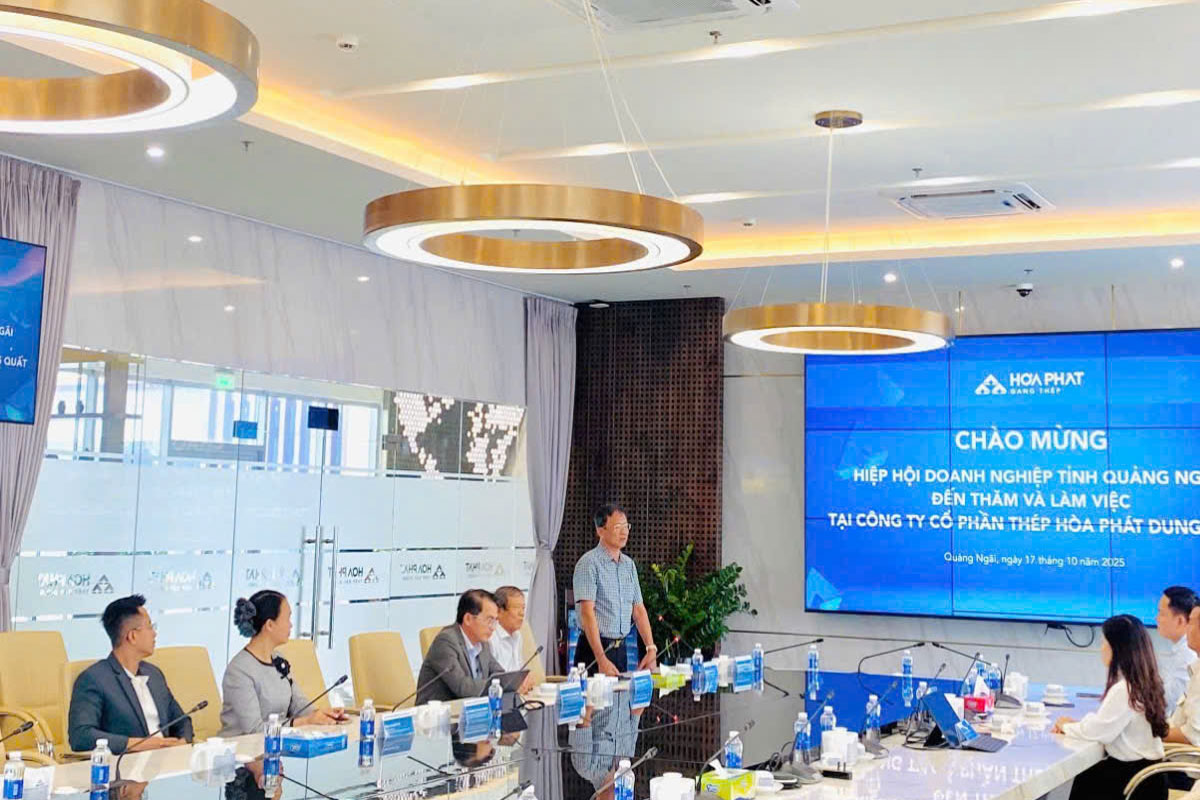 Ngày 17/10/2025, đoàn công tác của Hiệp hội Doanh nghiệp tỉnh Quảng Ngãi, trong đó có ông Lê Nhất Vũ – Giám đốc Công ty TNHH SX & TM Thu Ba, đã có chuyến thăm và làm việc tại Công ty Cổ phần Thép Hòa Phát Dung Quất.